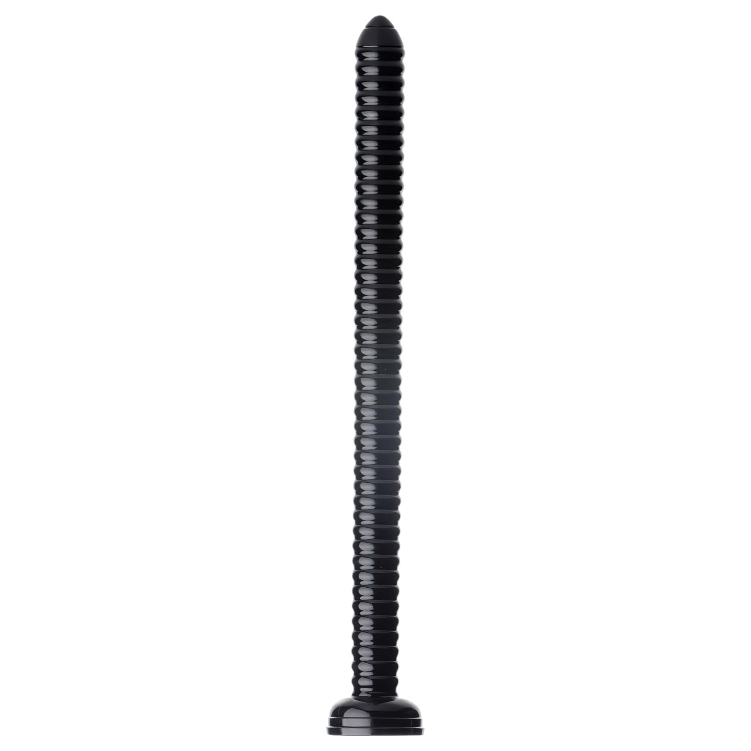 Rillet Slange 19 - sugekopp analdildo (svart)