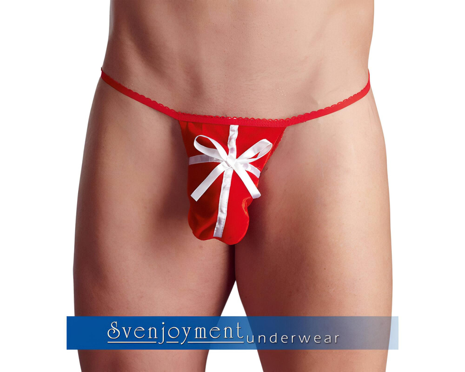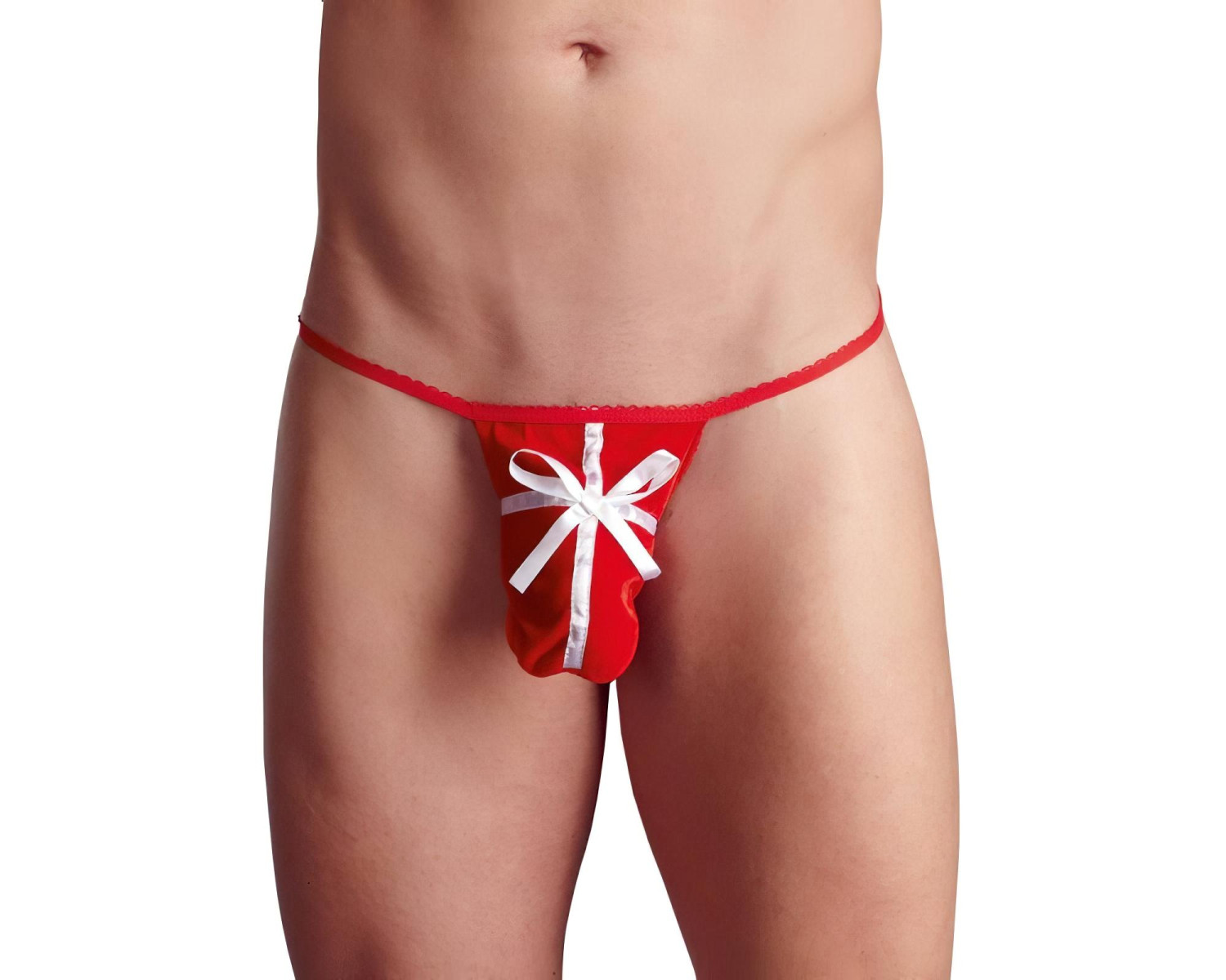 Gi en gave til deg selv - bokstavelig talt! Rød fløyelstring for menn med sløyfe, slik at du blir kveldens mest sexy overraskelse!