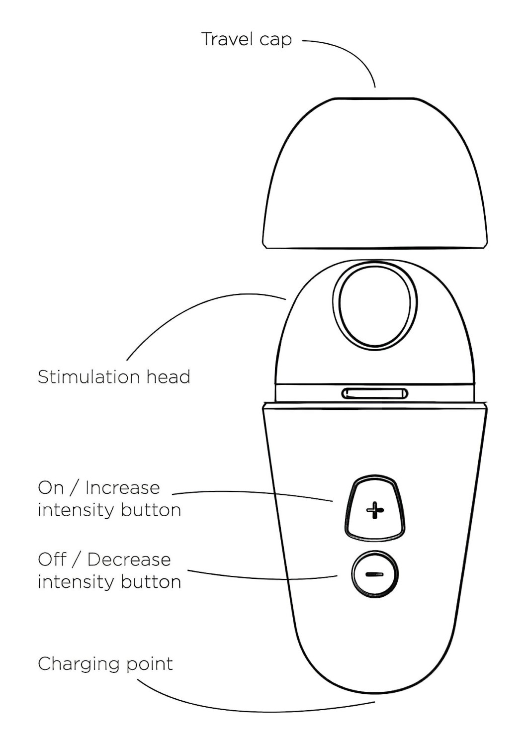 Påfør vannbasert glidemiddel på stimuleringshodet og klitoris for å begynne å nyte. Hold + knappen inne i 2 sekunder for å slå på ROMP Free X. Plasser stimuleringshodet på klitoris med mildt trykk. Velg mellom de 10 intensitetsnivåene ved å trykke på + og - knappene. Hold - knappen inne i 2 sekunder for å slå av enheten.