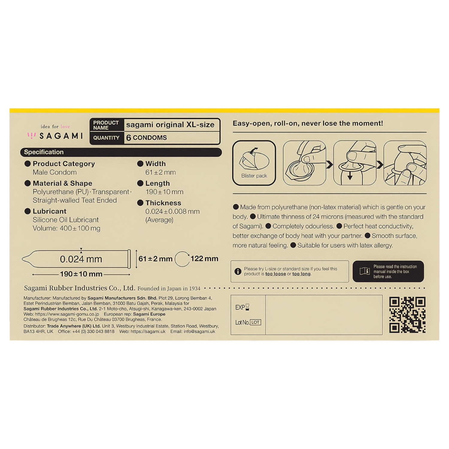 • 6 stk Sagami Original 0.02 XL-Size kondomer