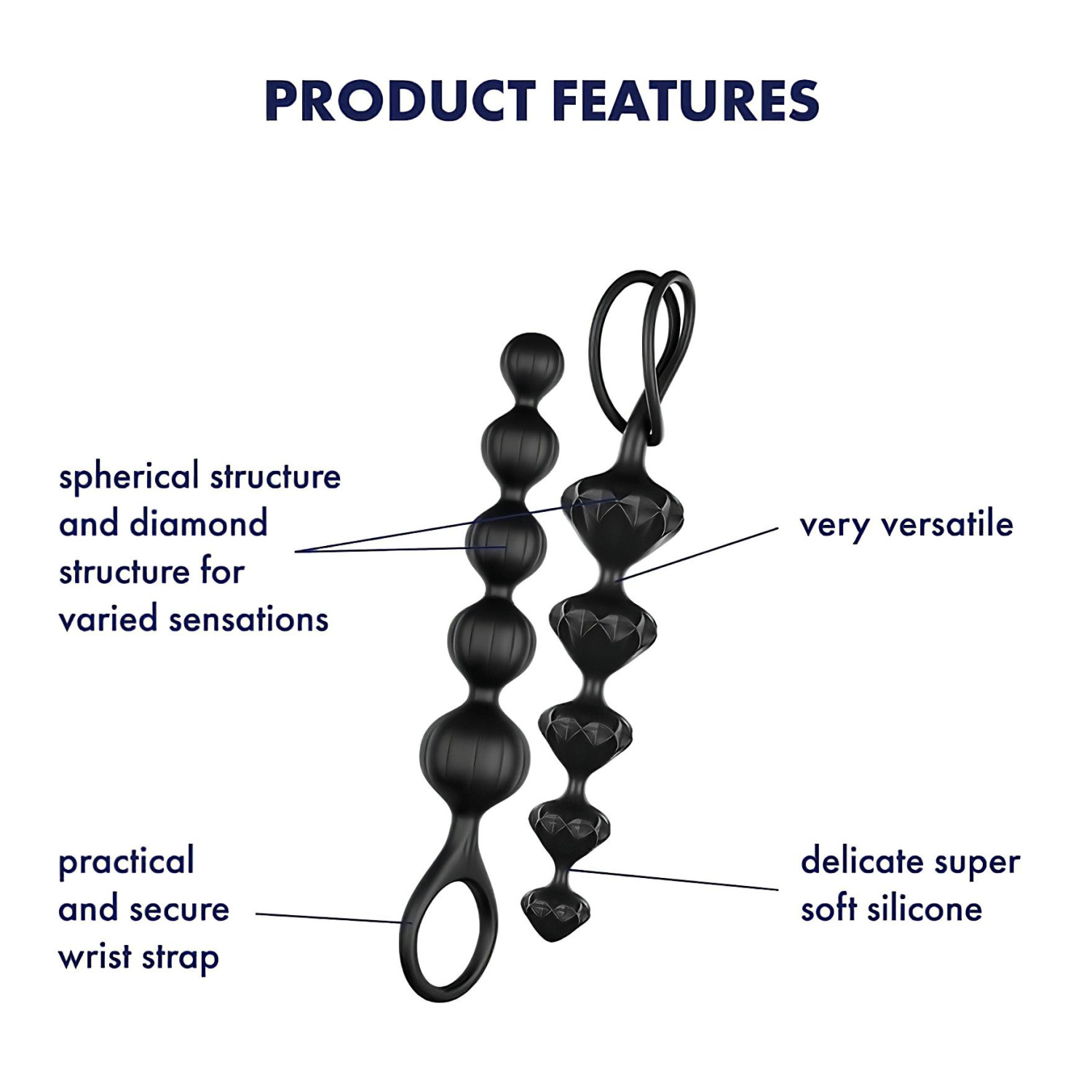 Satisfyer Love Beads - perlesett for anal stimulering (svart)
