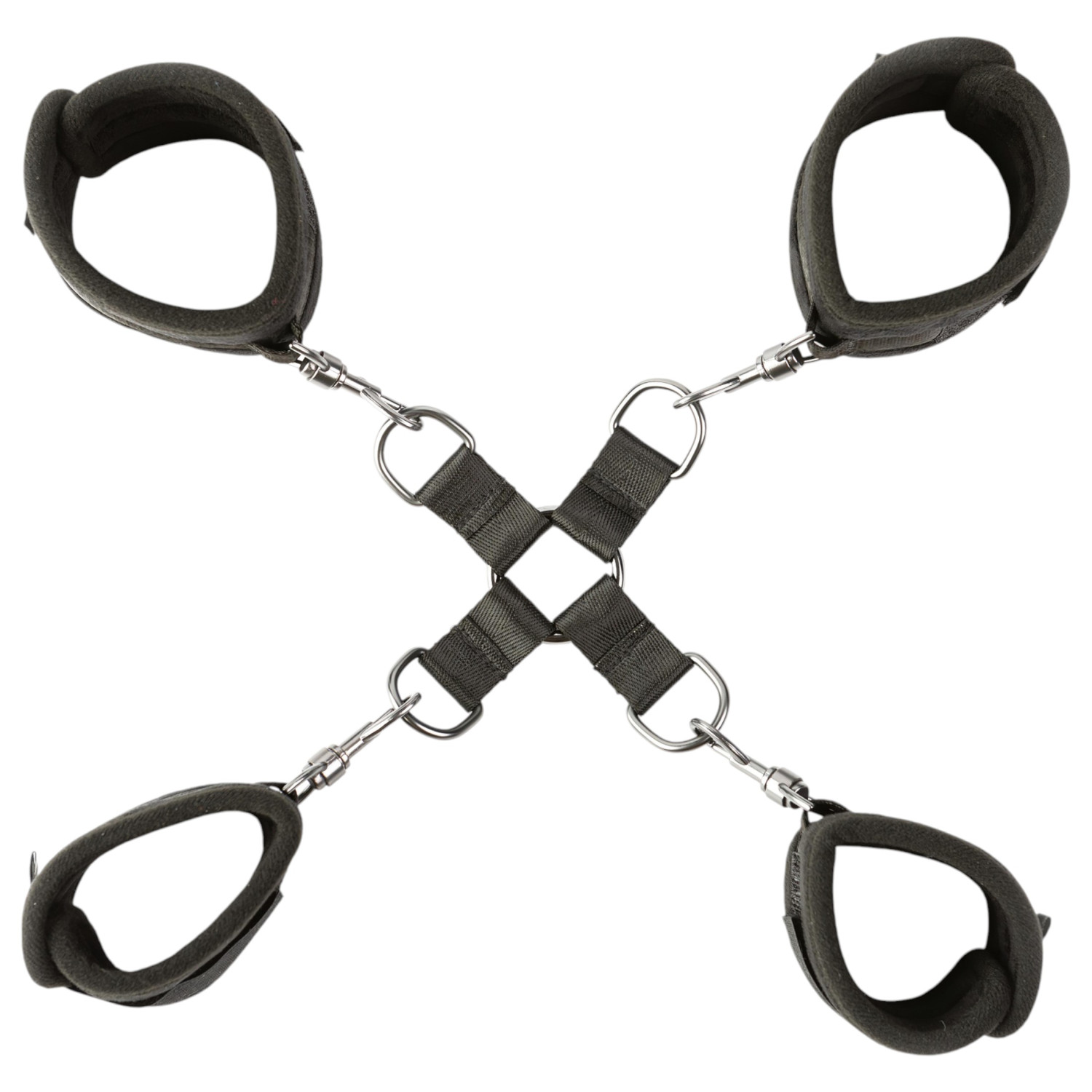 1. Plasser de polstrede mansjettene på partnerens håndledd og ankler, juster borrelåsene for en komfortabel, men sikker passform.