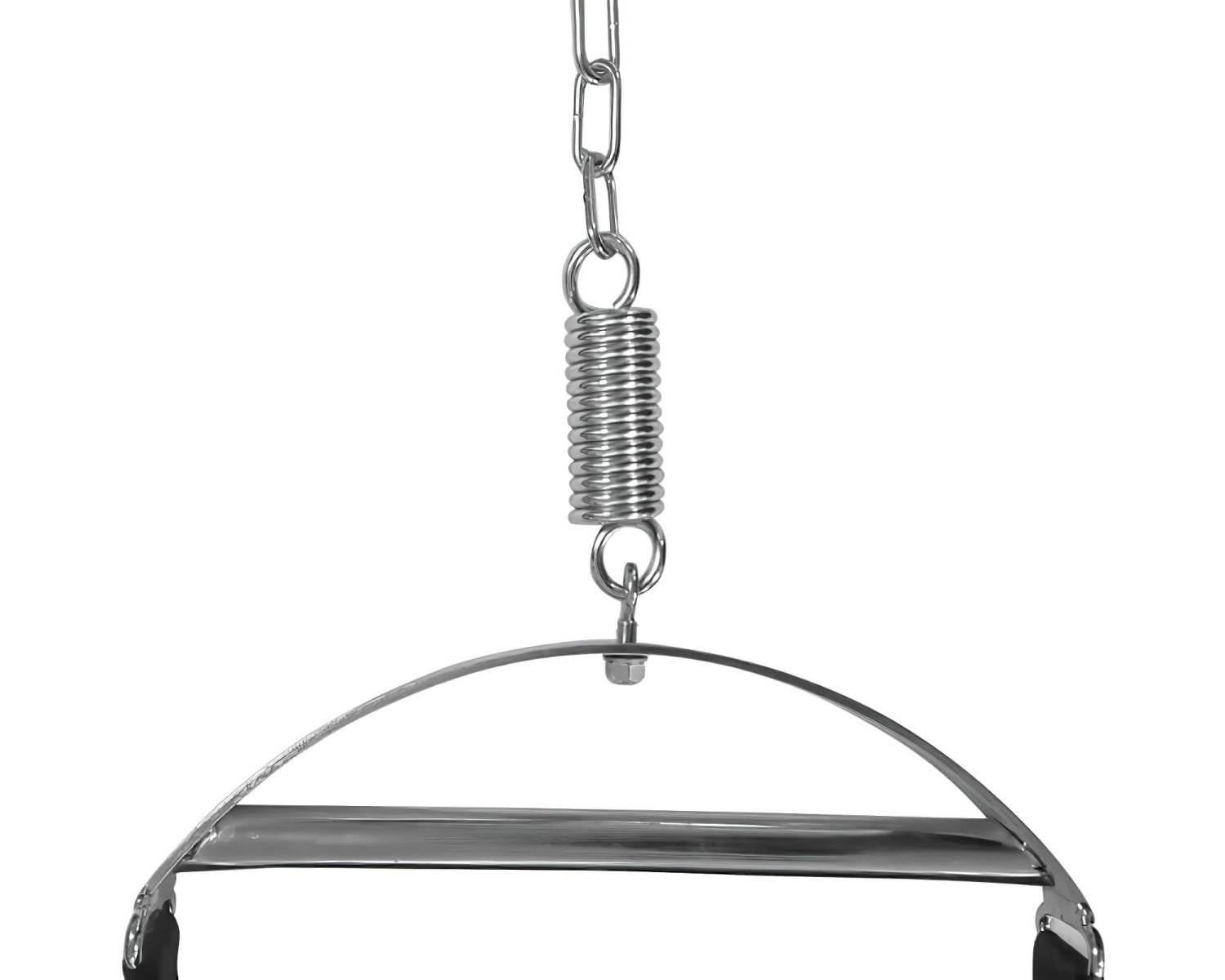 Fest gyngen til en passende takbjelke eller dørkarm med de medfølgende monteringsdelene. Juster stroppelengden til ønsket posisjon. Sett deg eller legg deg komfortabelt, og la fjærens bevegelser øke opplevelsen. Eksperimenter med ulike posisjoner ved hjelp av de medfølgende tipsene!