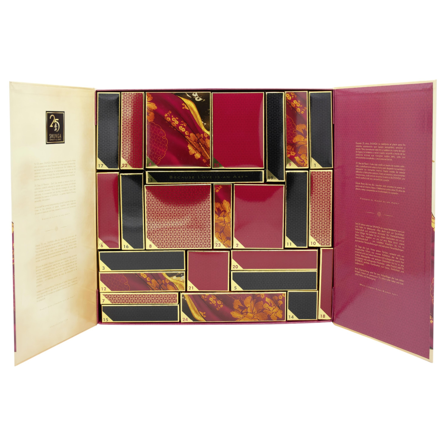 A SHUNGA Calendar of Desires er en eksklusiv, 25-års jubileumsutgave av en luksus adventskalender som inneholder 25 spesielle overraskelser for å feire sensualitet og begjær.