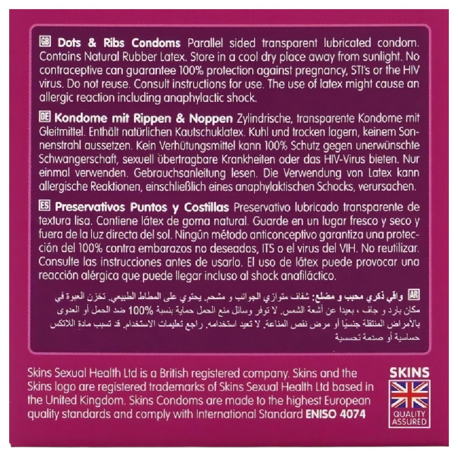 Skins - ribbede og prikkete kondomer (4 stk) er det perfekte valget hvis du søker en mer intens opplevelse og felles glede i intime øyeblikk.