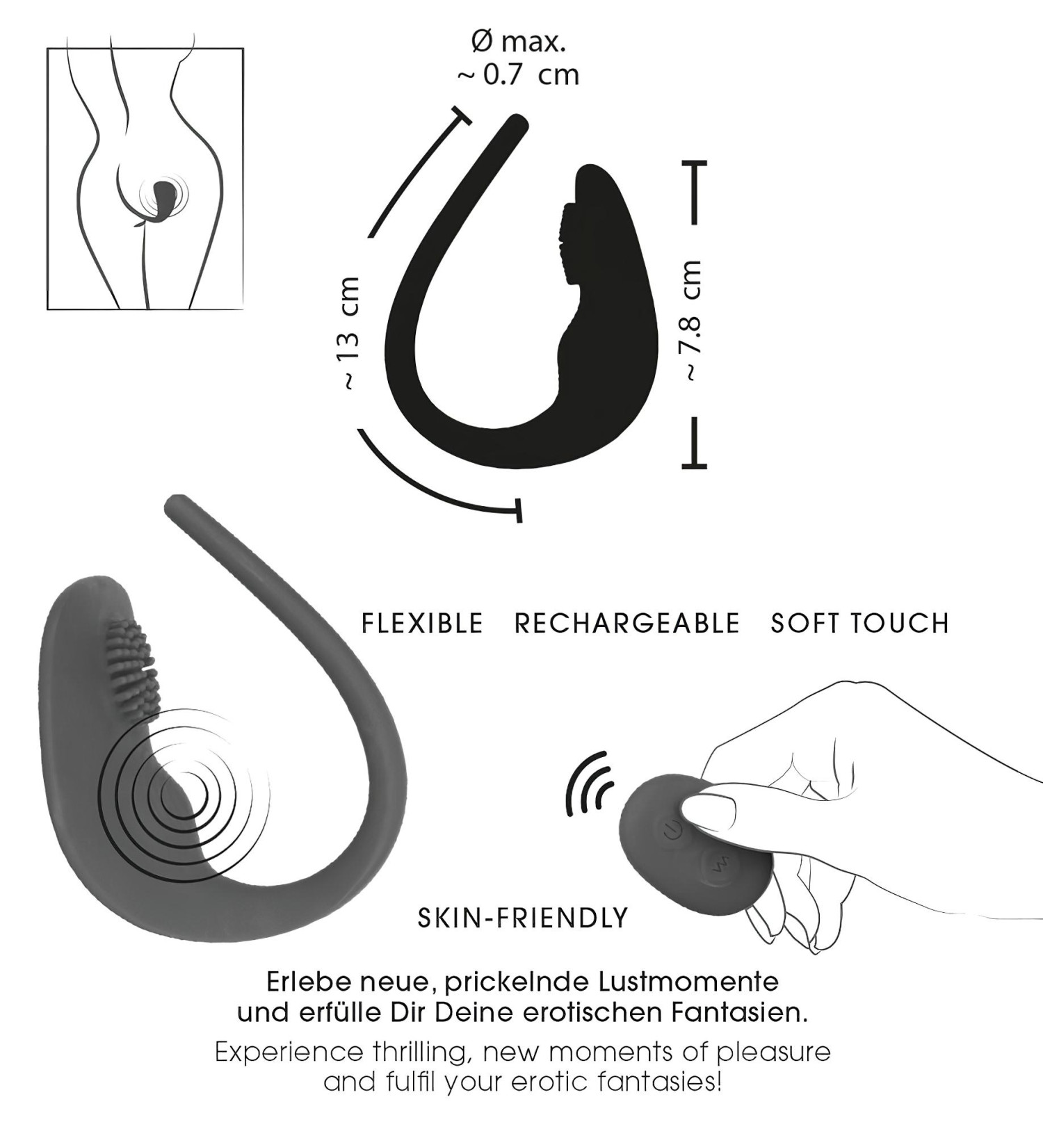 • Kan skjules i undertøyet: Diskret form, ideell for hemmelig glede – på kino, under shopping eller hjemme.