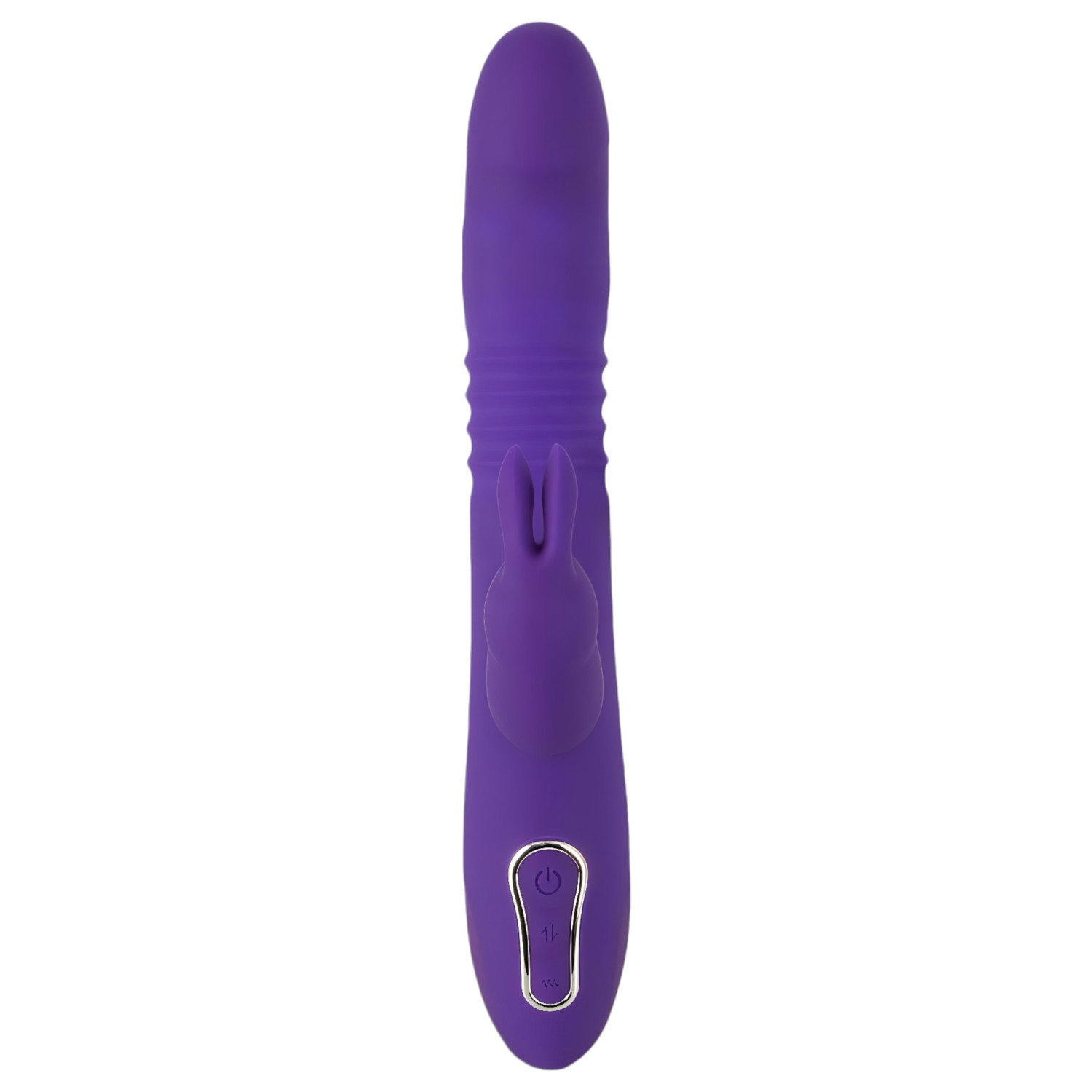 Solid base, trippel vibrator laget av fløyelsaktig silikon med fleksibel kanin klitorisstimulator og kuleformet analarm. For trippel nytelse!