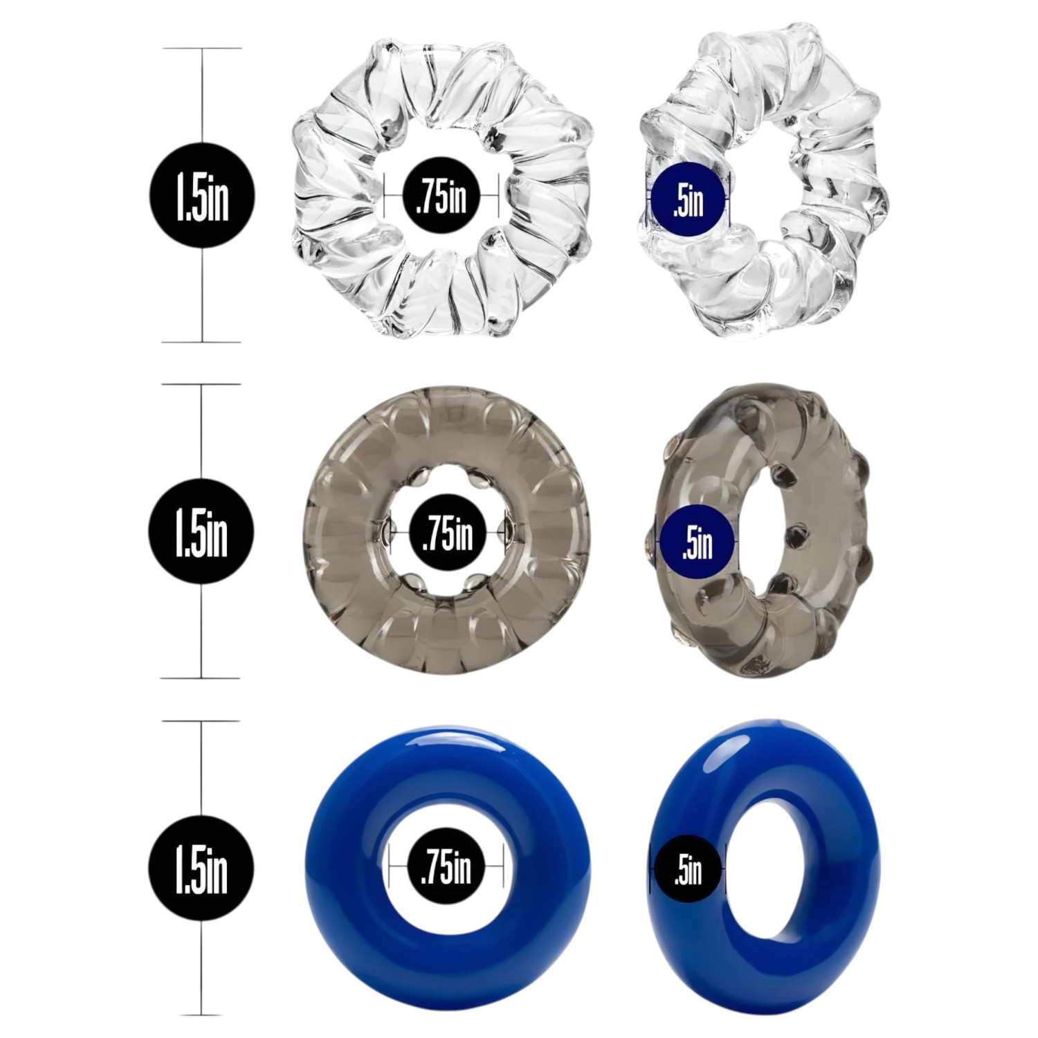 Tre ulike teksturer av Stay Hard penisringer som øker nytelsen og hjelper med å forlenge tiden sammen!