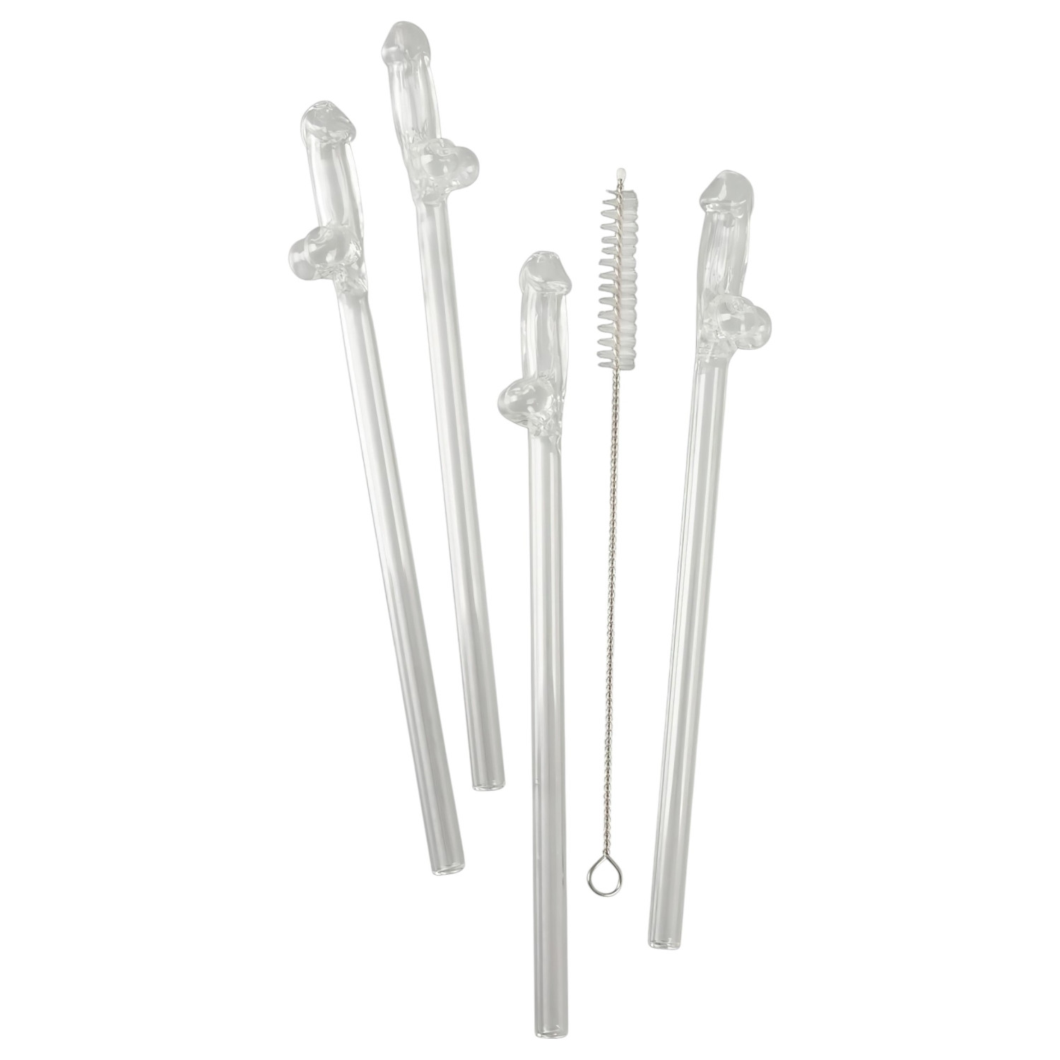 Straw Willy - penisformet glassugerør - gjennomsiktig (4 stk)