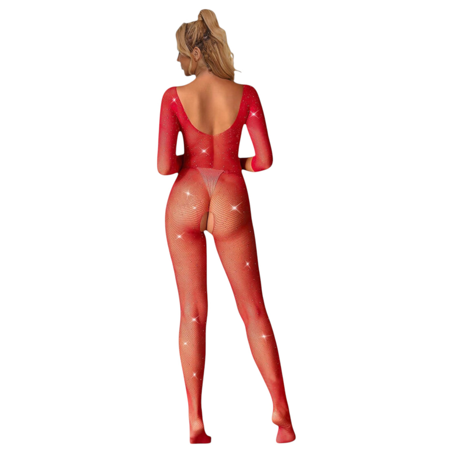 Den langermede, røde bodyen med diamantmønster er et uunnværlig plagg i enhver sensuell kvinnes garderobe, med sin moderne stil og slående utseende!