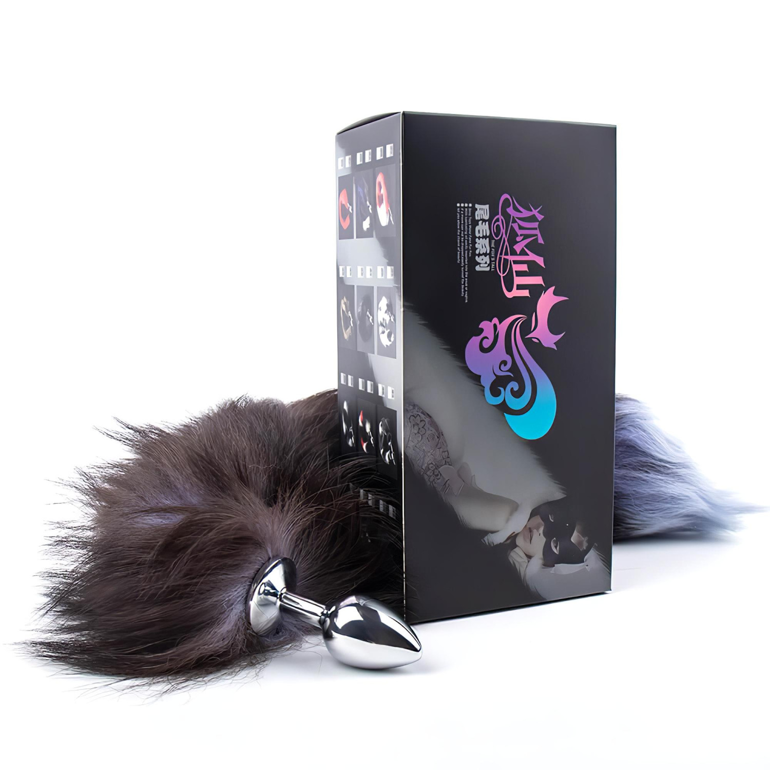 Sunfo - metall analtapp med revehale (sølv-svart)