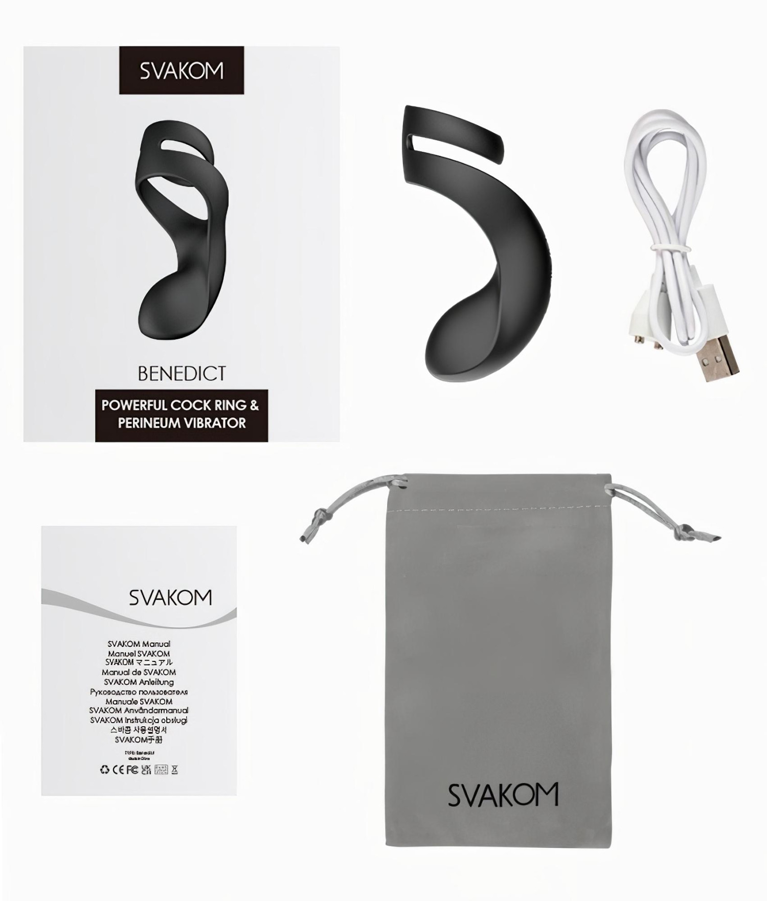 Svakom Benedict - svart vibrerende penisring med perineumstimulator