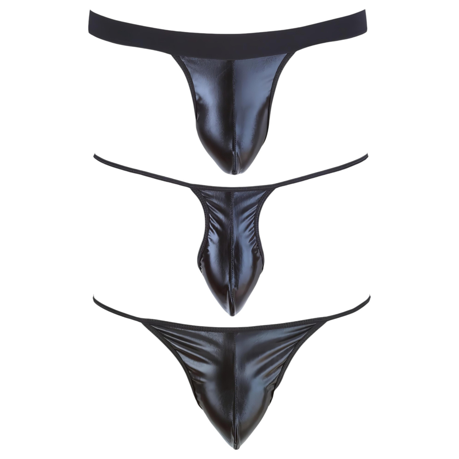 3 uimotståelige sexy herrethongs i en enkelt pakke! Utmerket design, materiale av høy kvalitet, varierte stiler.