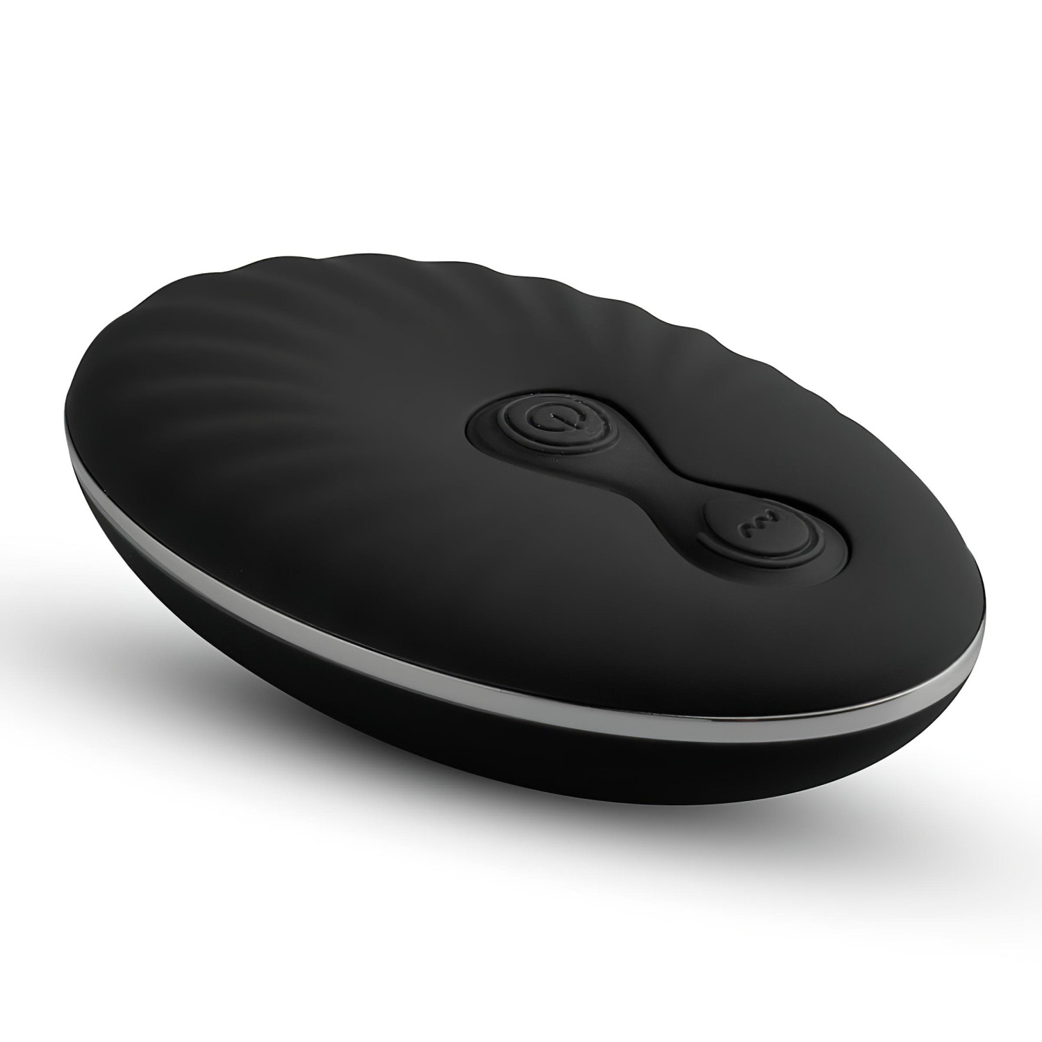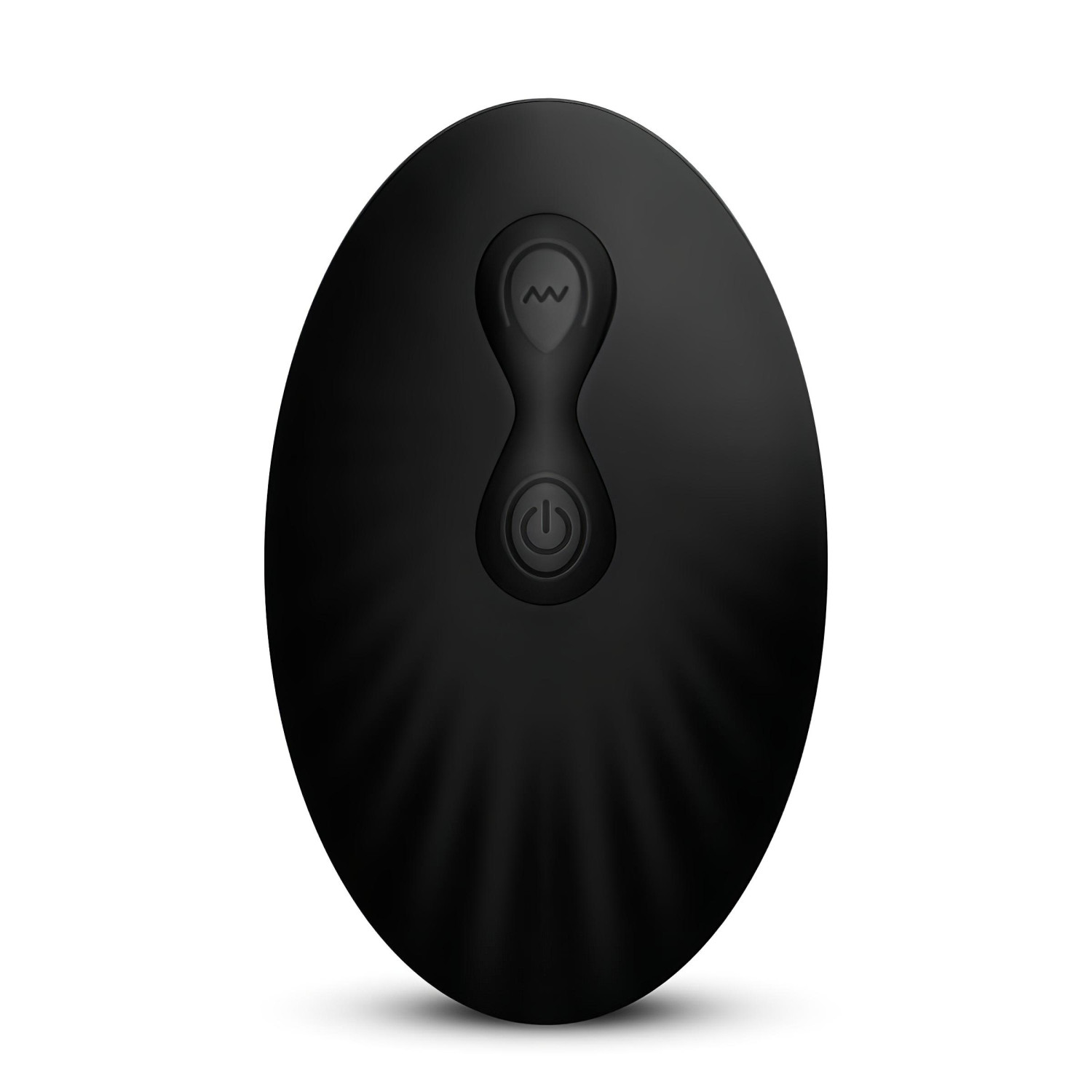 Hold knappen på den lille vibratoren inne for å slå den av og på, deretter kan vibrasjonen styres med knappene på fjernkontrollen.