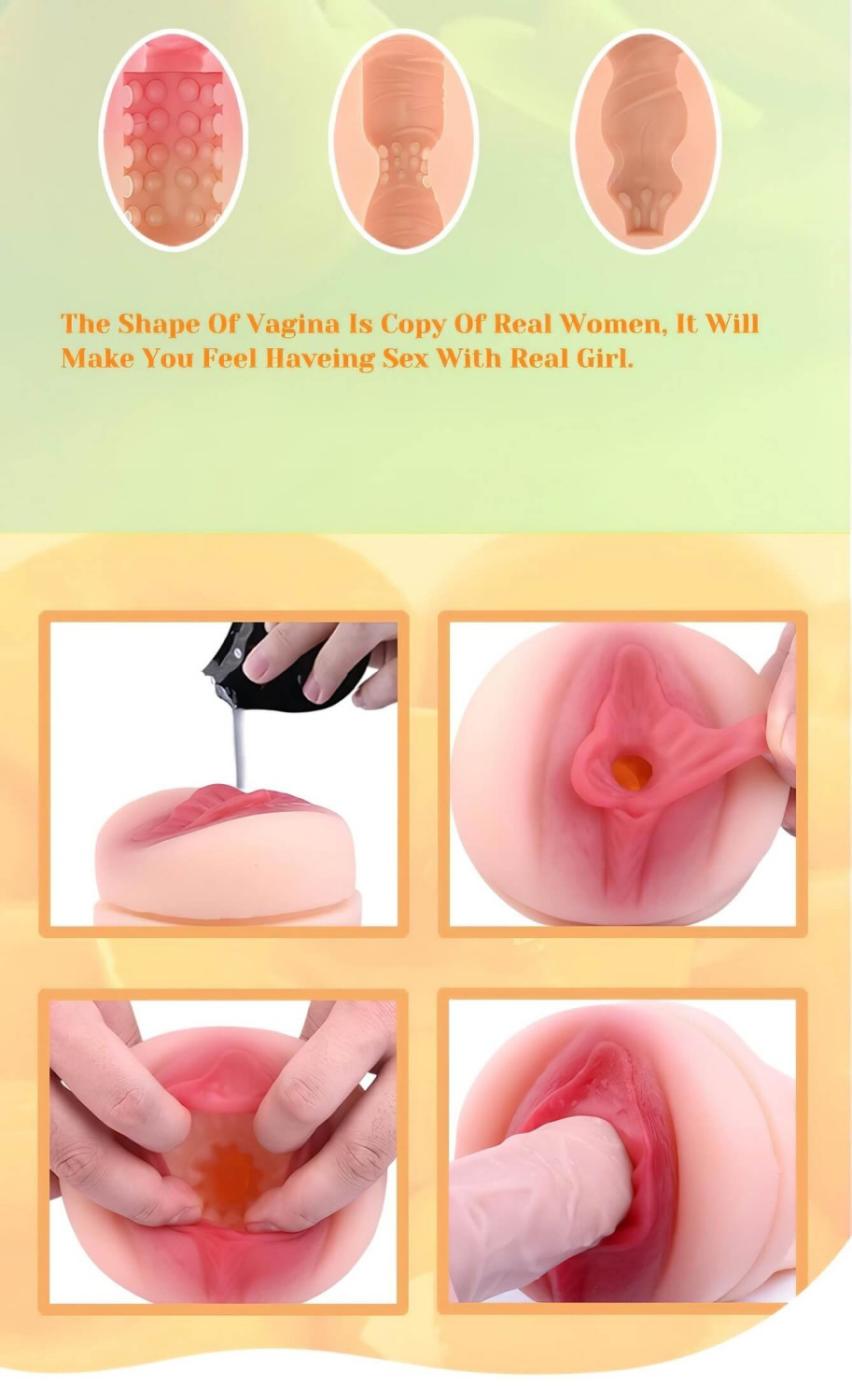 • Det realistiske materialet gjør penetrasjonen enkel. Materialets berøring er myk og glatt, med en realistisk utformet skjedevegg inni, som er behagelig prikket ved inngangen, deretter strammere, som gir større trykk på penis, og utvider seg igjen før den strammes inn på nytt.