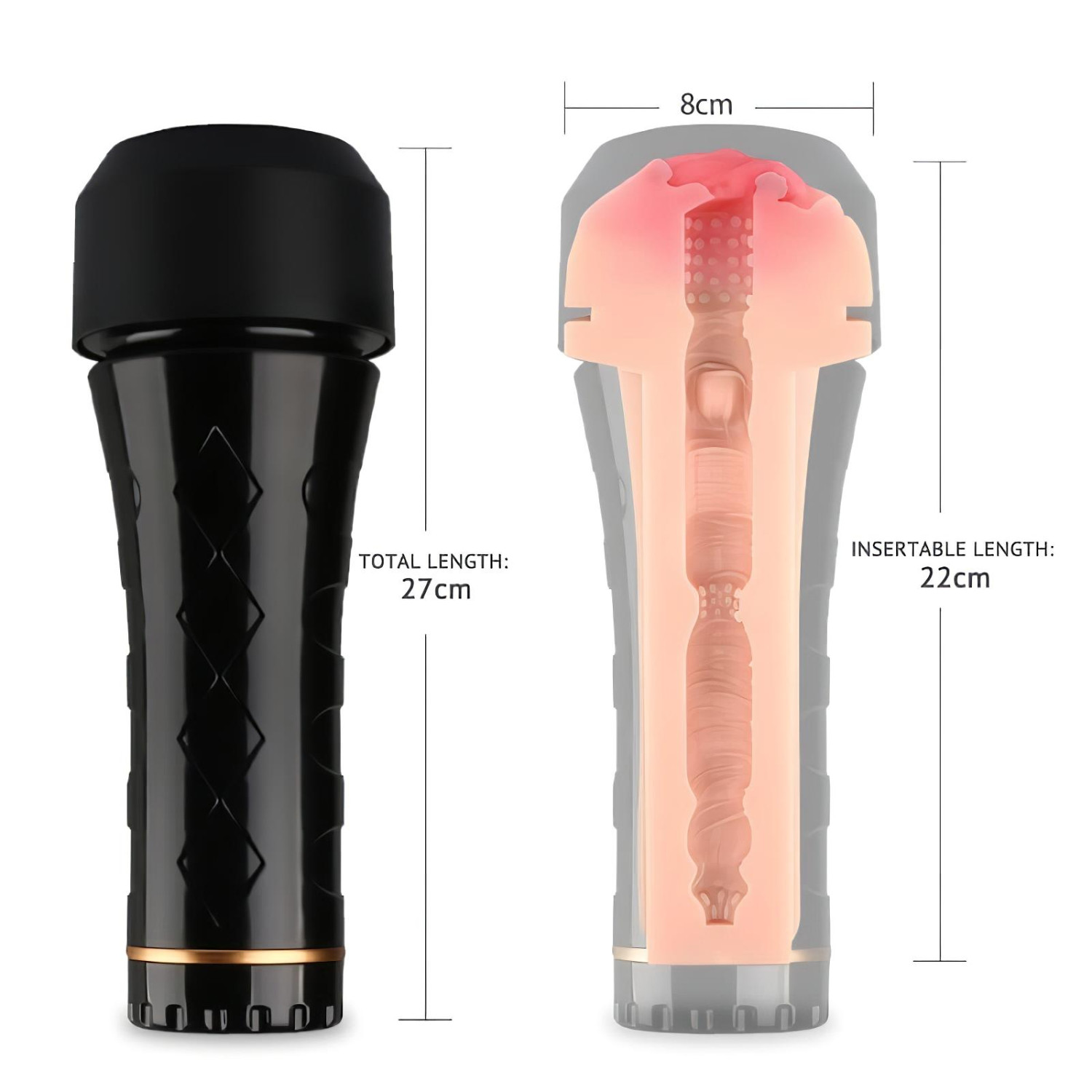 • Det indre myke hylsteret kan lett fjernes fra den ytre etuiet (begge ender av etuiet kan skrus av), og for en enda mer realistisk opplevelse kan det varmes opp under varmt vann.