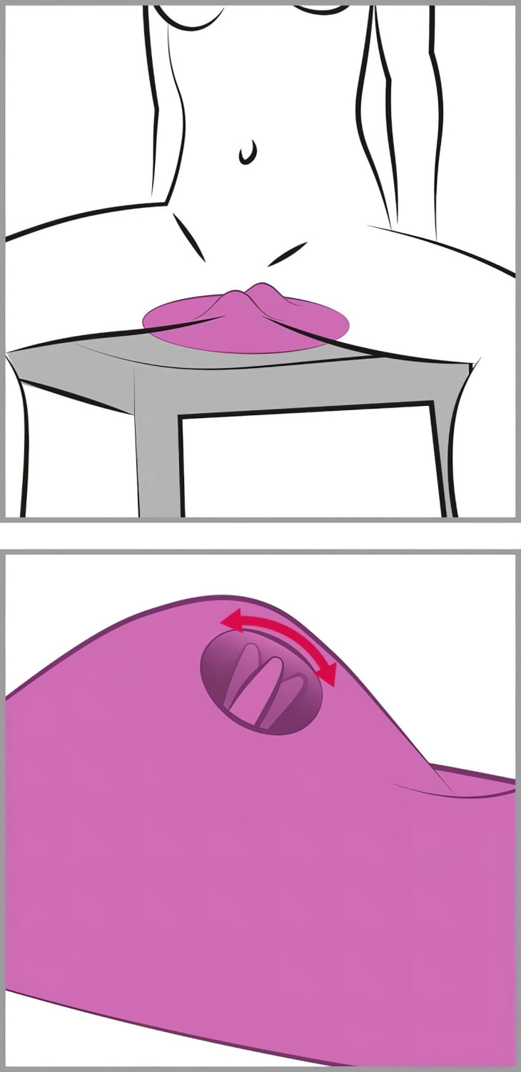Plasser puten på en fast overflate, sett deg ned, finn en komfortabel posisjon, ta tak i fjernkontrollen eller gi kontrollen til partneren din og nyt den spesielle ytre stimuleringen.