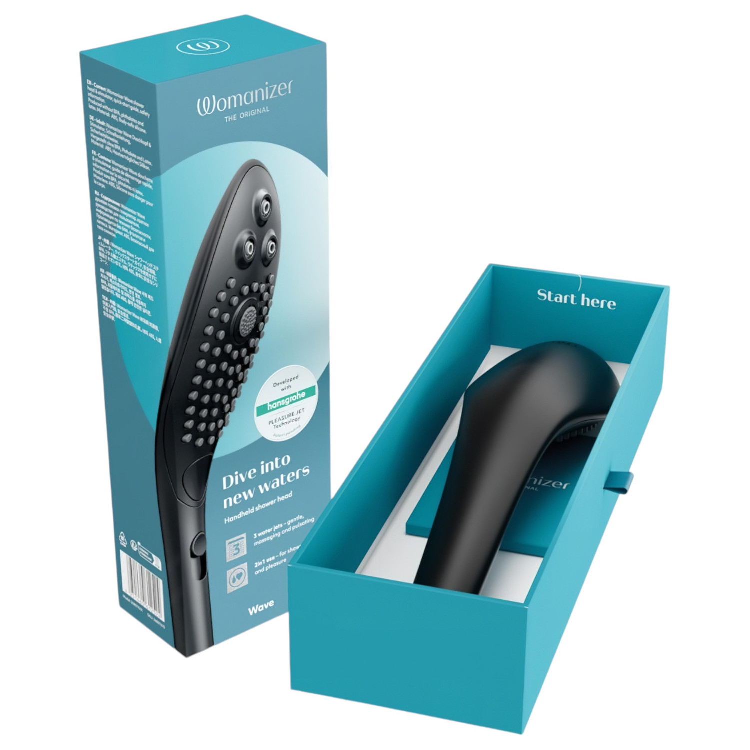 Se presentasjonsvideoen for Womanizer Wave - masserende dusjhode (svart)!
