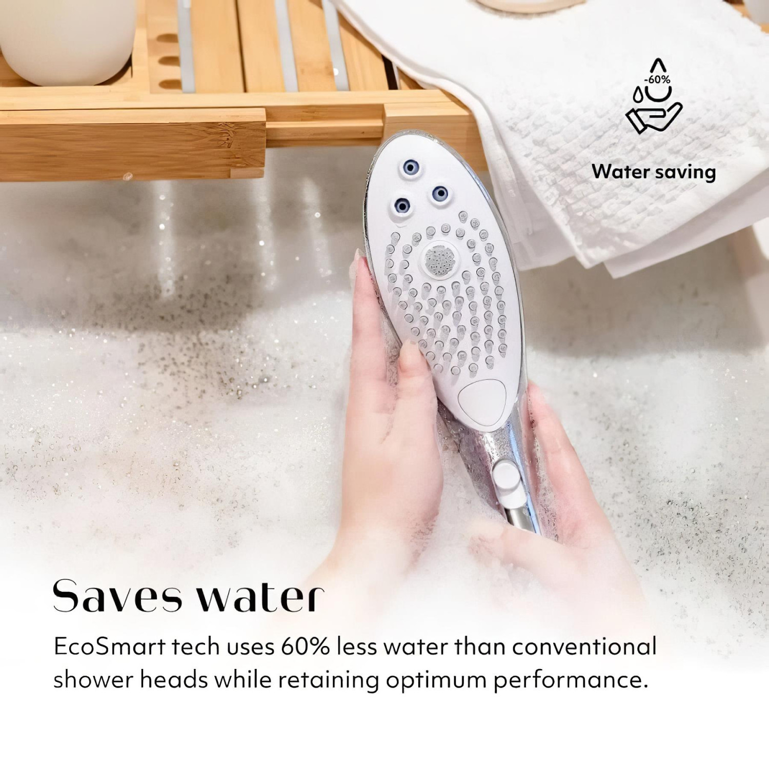 • Sparer vann - Wave er laget med EcoSmart-teknologi og bruker 60 % mindre vann samtidig som det gir samme vanntrykk