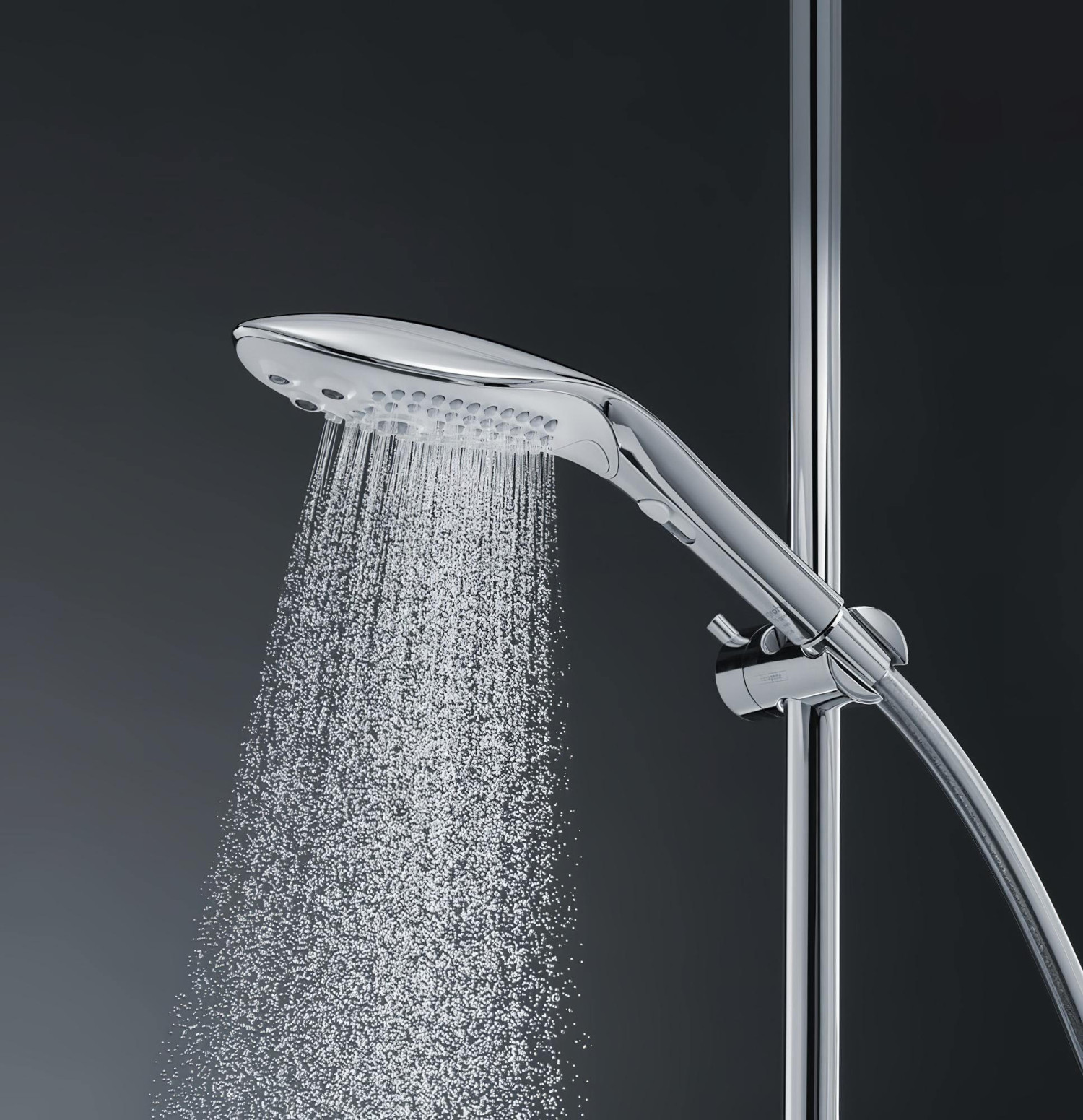 • Powder Rain: still inn en mild vannstråle ved hjelp av små dyser spredt over hele hodet og bruk som et vanlig dusjhode