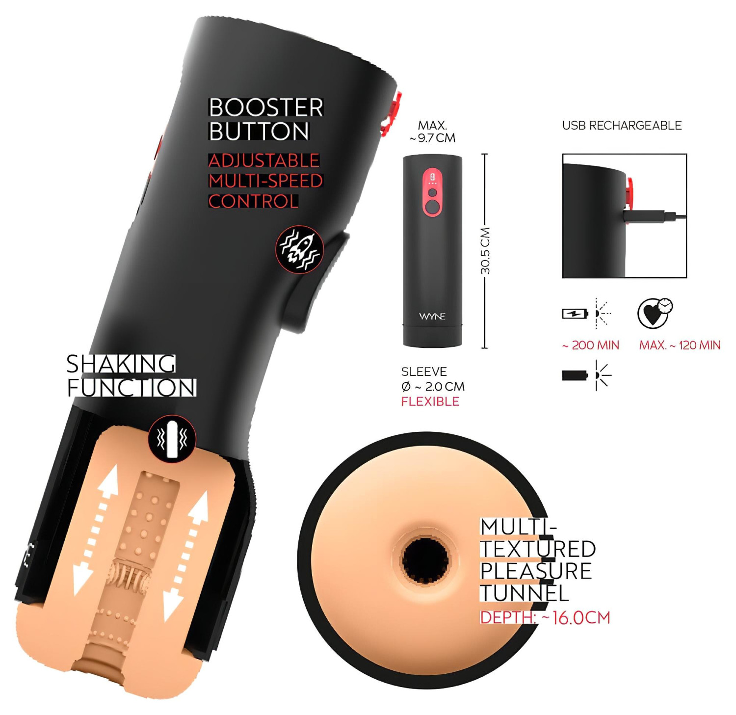 • Materiale: ABS, silikon, PU, TPE (EU-forskriftskompatibel, phthalatfri)