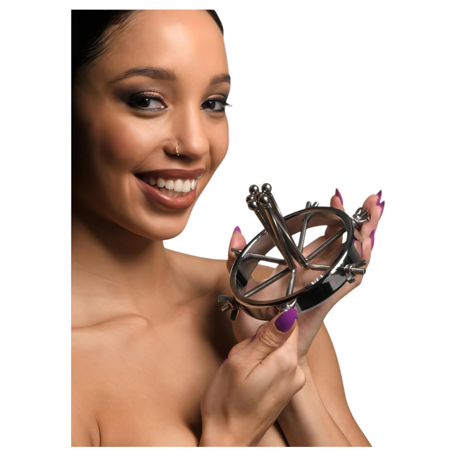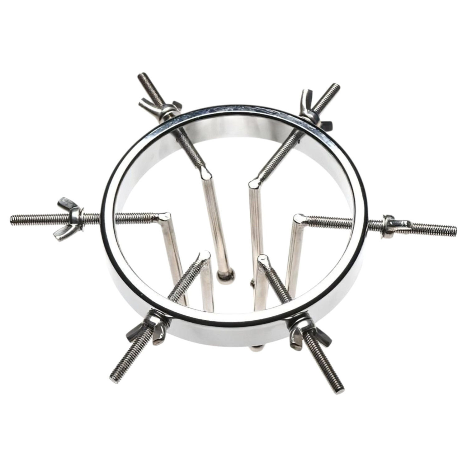 Denne premium anale ekspanderen er spesielt designet for erfarne brukere som ønsker å oppleve en intens, gradvis utvidelse. De 6 glatte stavene ender i små kuler, noe som gjør utvidelsen komfortabel og sikker. Diameteren er justerbar fra 2,5 cm til hele 10 cm, slik at du kan oppleve avanserte nivåer av utvidelse, helt opp til knyttnevestørrelse. Hver stang kan justeres individuelt ved hjelp av vingemuttere, slik at du kan tilpasse utvidelsen helt etter dine behov.