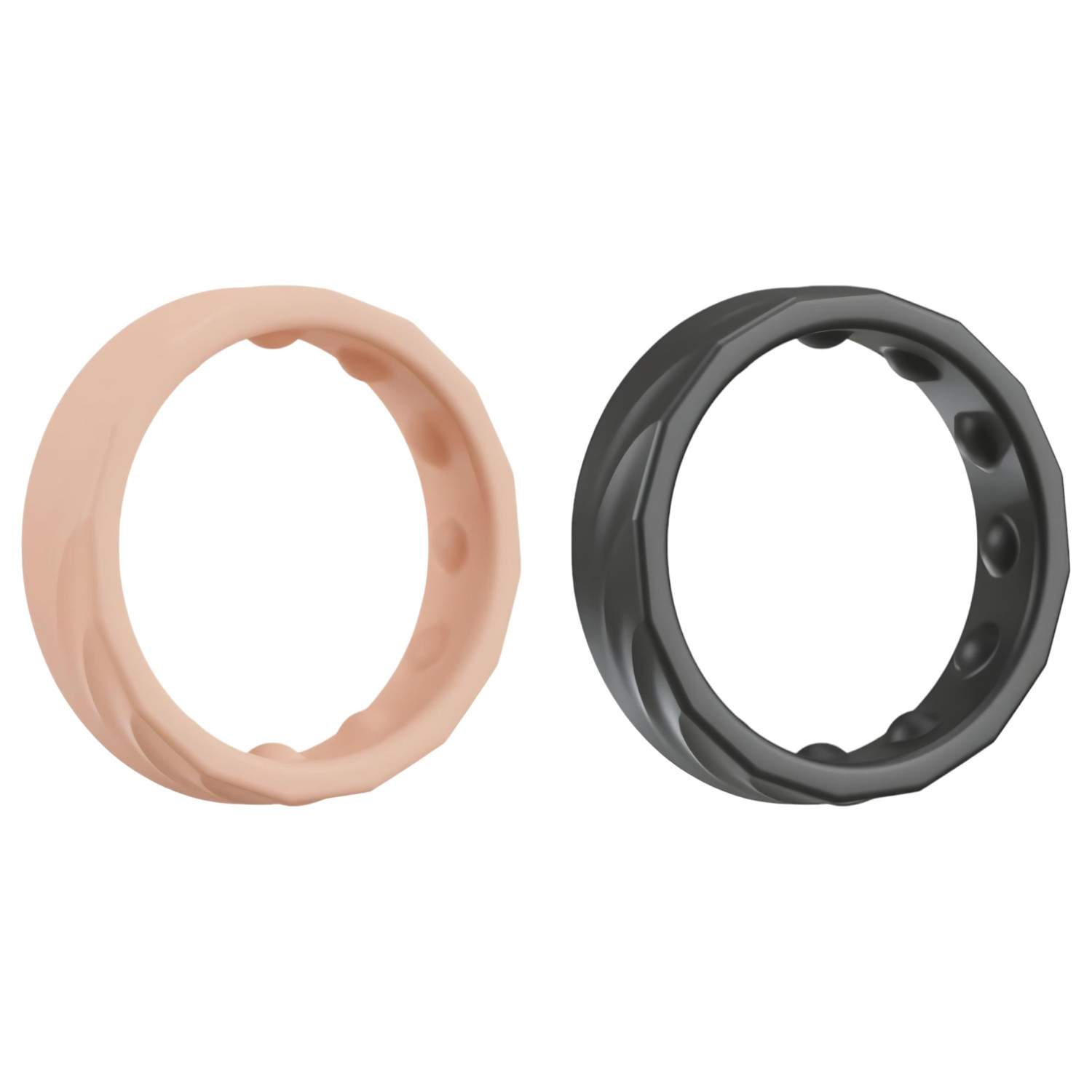 • Kan brukes alene eller sammen: Som penisringer eller testikkelringer.