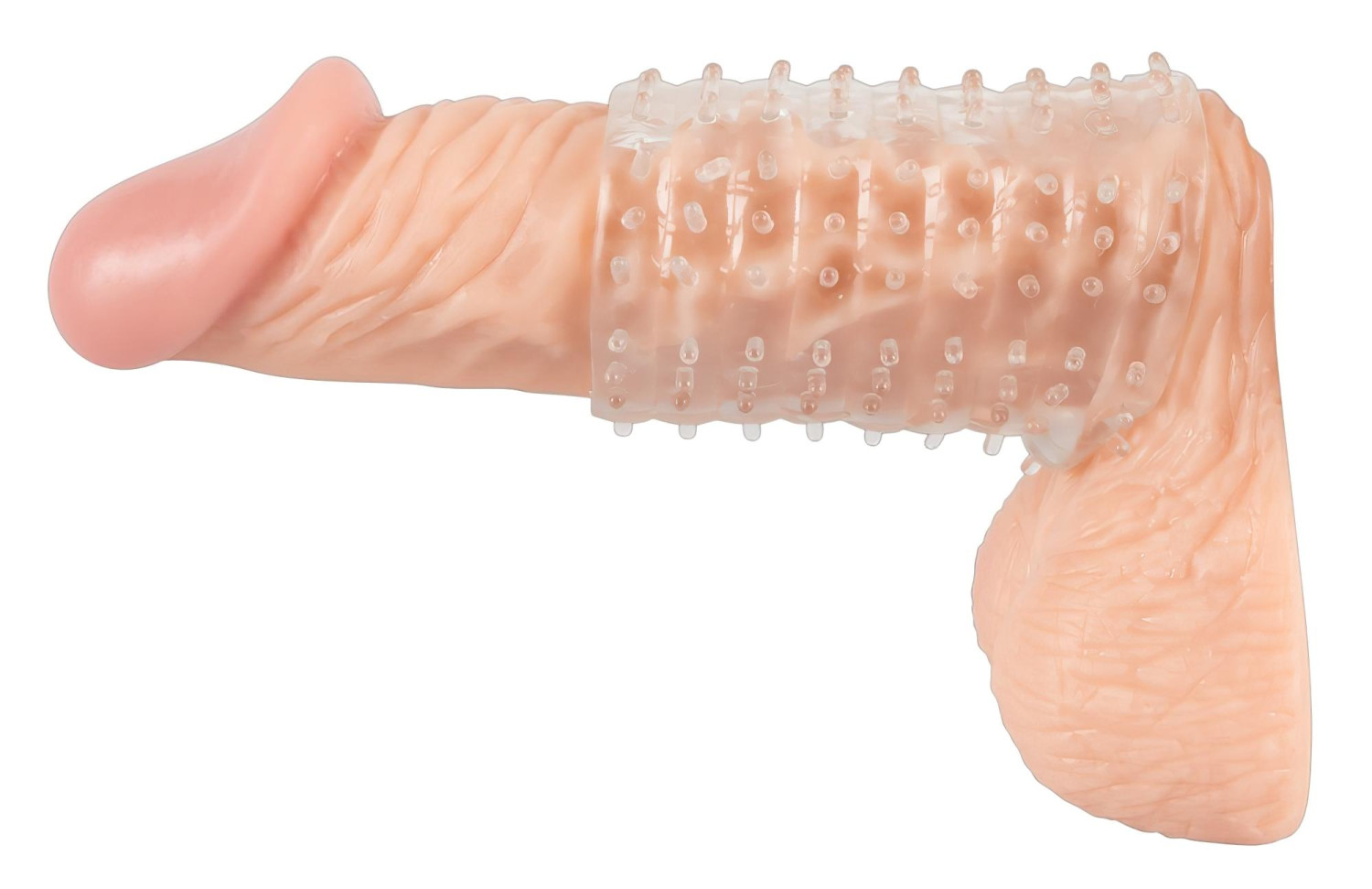 • Nuppete penismansjett – 7 cm lengde, 3,3 cm diameter (svært elastisk), gjennomsiktig TPE