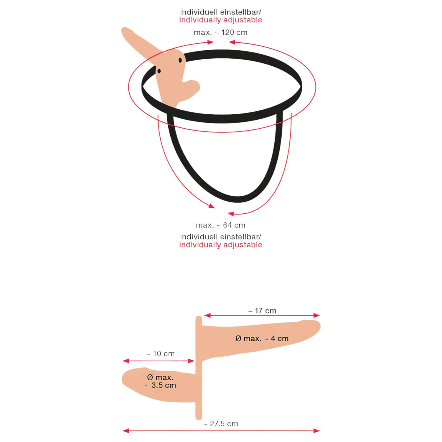 TIPS: hvor båndene festes til dildoene er det noe bevegelsesmulighet, så det er lurt å stramme båndene for å oppnå et godt grep.