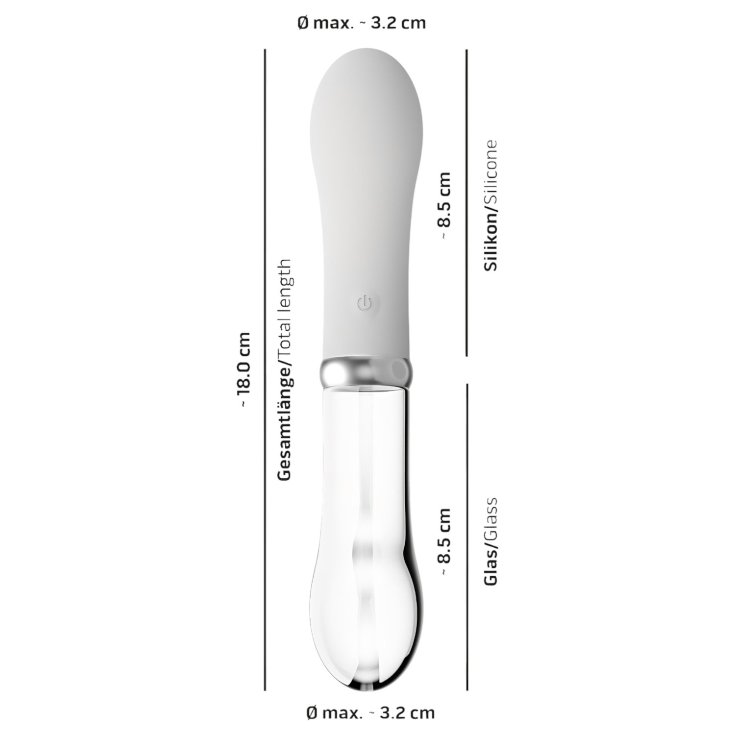 • begge ender kan brukes - den ene siden er laget av fløyelsmyk silikon, og den andre av solid borosilikatglass av høy kvalitet