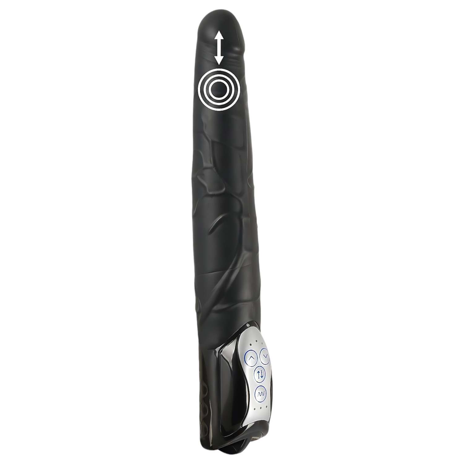 3-trinns inn-og-ut bevegelse, støtfunksjon og vibrasjon, fleksibelt materiale dildo med imponerende lengde!