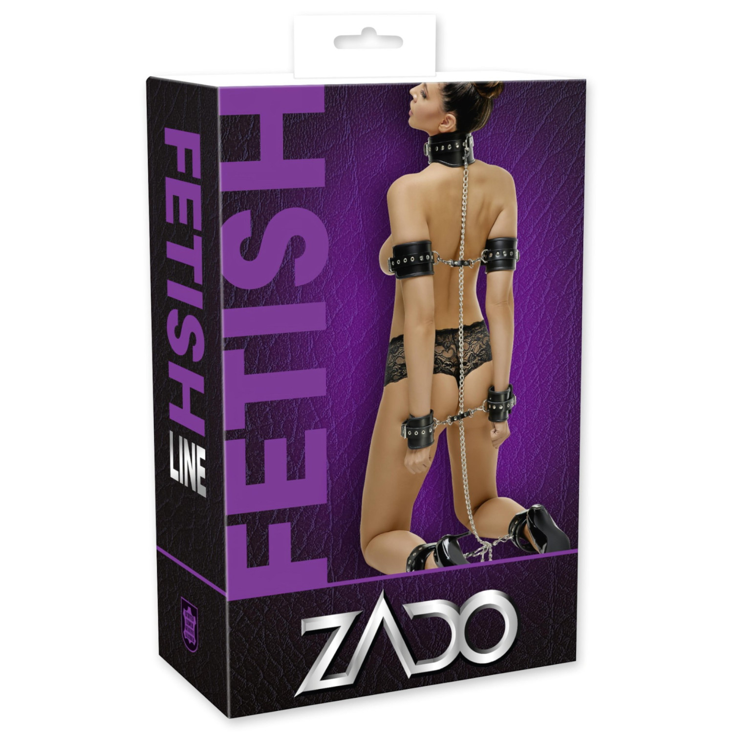 Reviews ZADO - komplett sort i sort lær for bondage-lek
