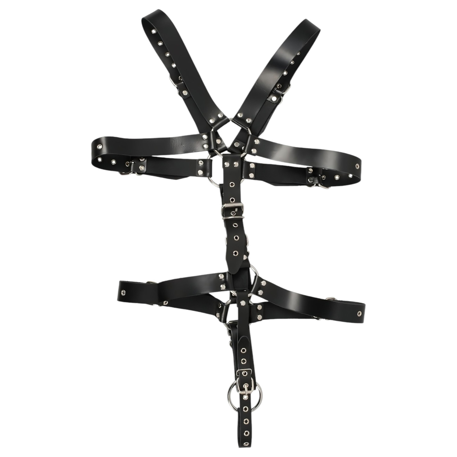 Oppdag de ville og erotiske BDSM-opplevelsene med denne premium herrebodyen i lær, som hever dominansen med nagler og metallringer!