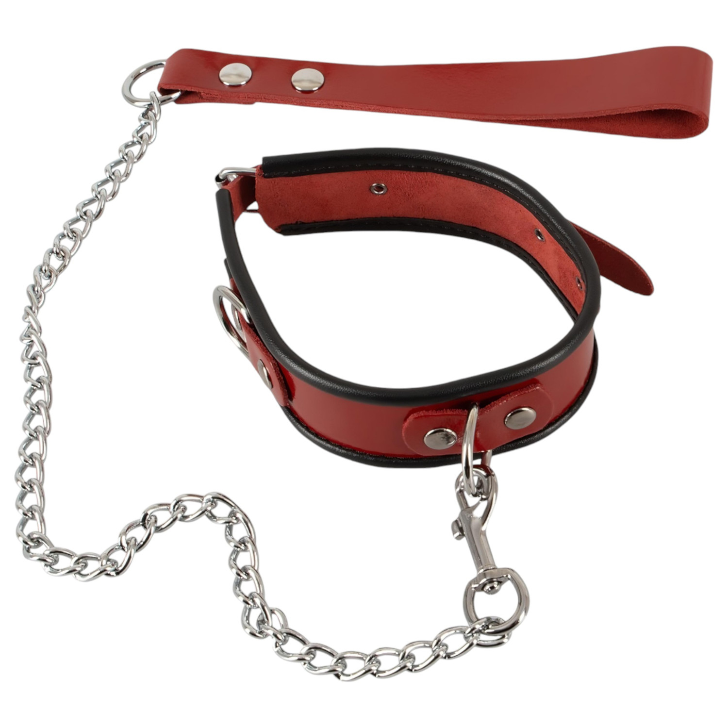 Reviews ZADO - Rødt lærhalsbånd med bånd