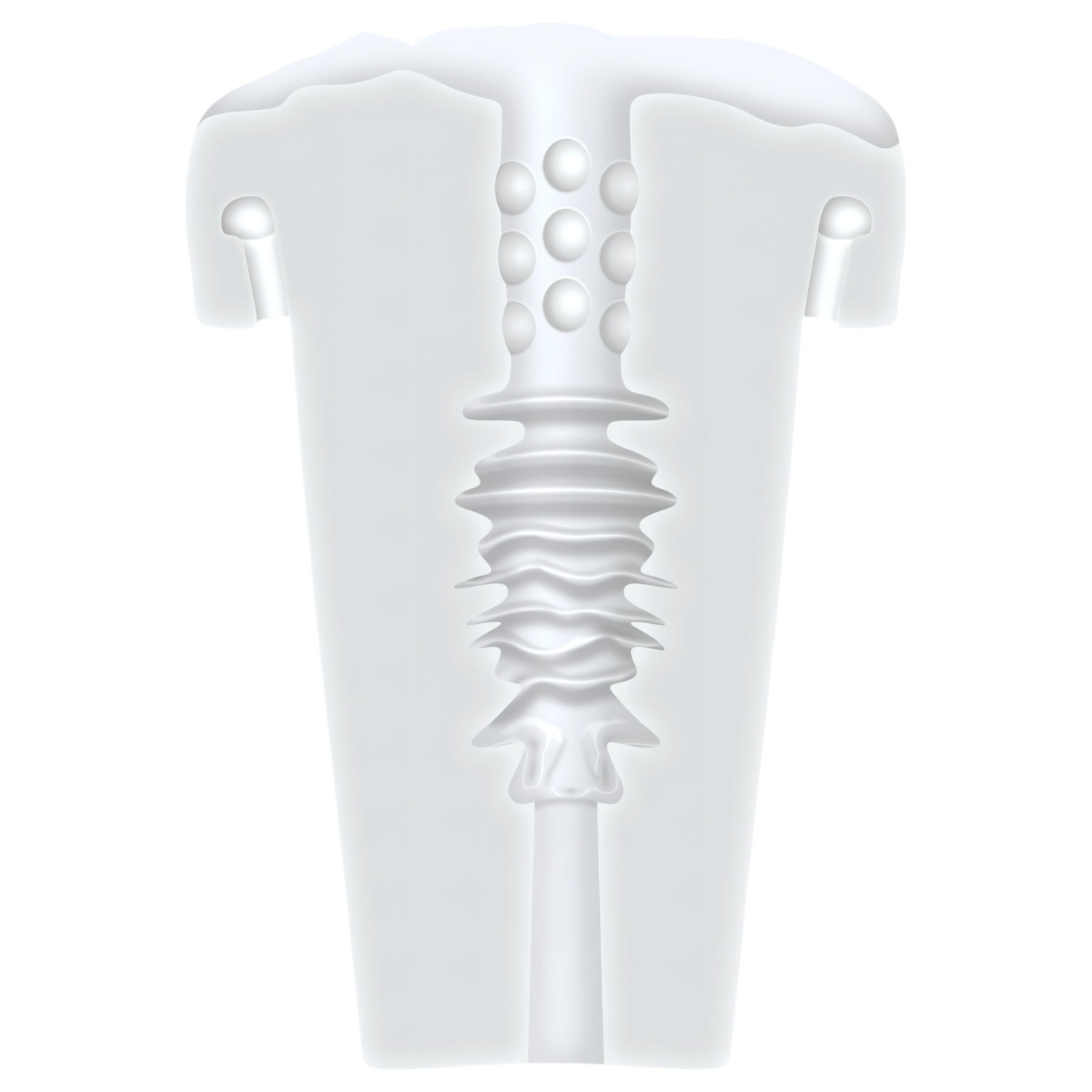 Oppdag den virkelige opplevelsen med en elastisk, myk innsats som skjuler en vakuumpumpe, som klemmer og suger som den ekte varen!